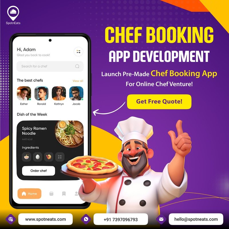 Elevate your private dining experience with a smart Chef Booking App built by SpotnEats! Whether you're planning an event or a gourmet dinner at home, with services like hiring a private chef for a dinner party and more. our solution connects users to professional chefs instantly. With modern features and seamless UX, booking a personal chef has never been easier or faster.